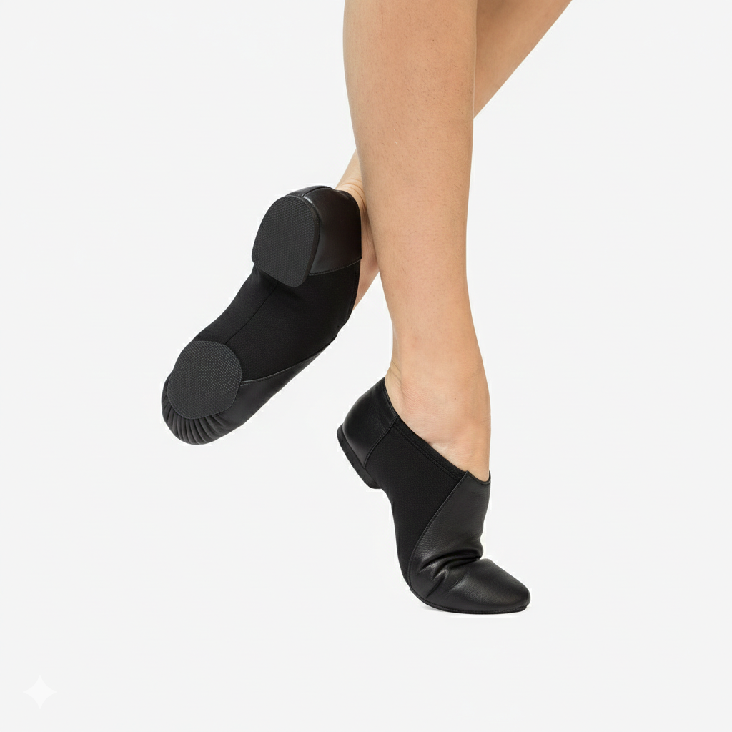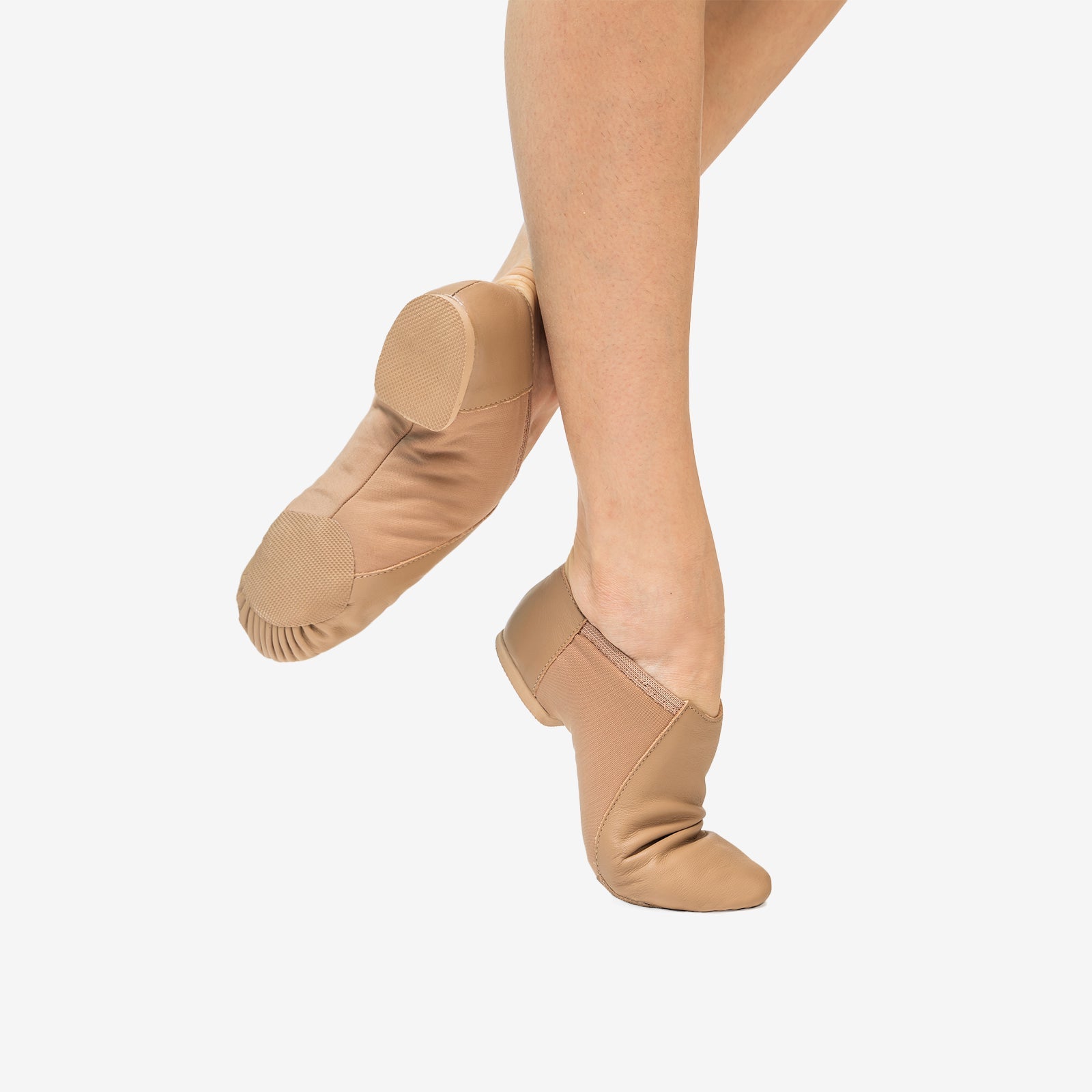 • Low profile, split sole jazz shoe with a nylon spandex insert under the arch that hugs the instep