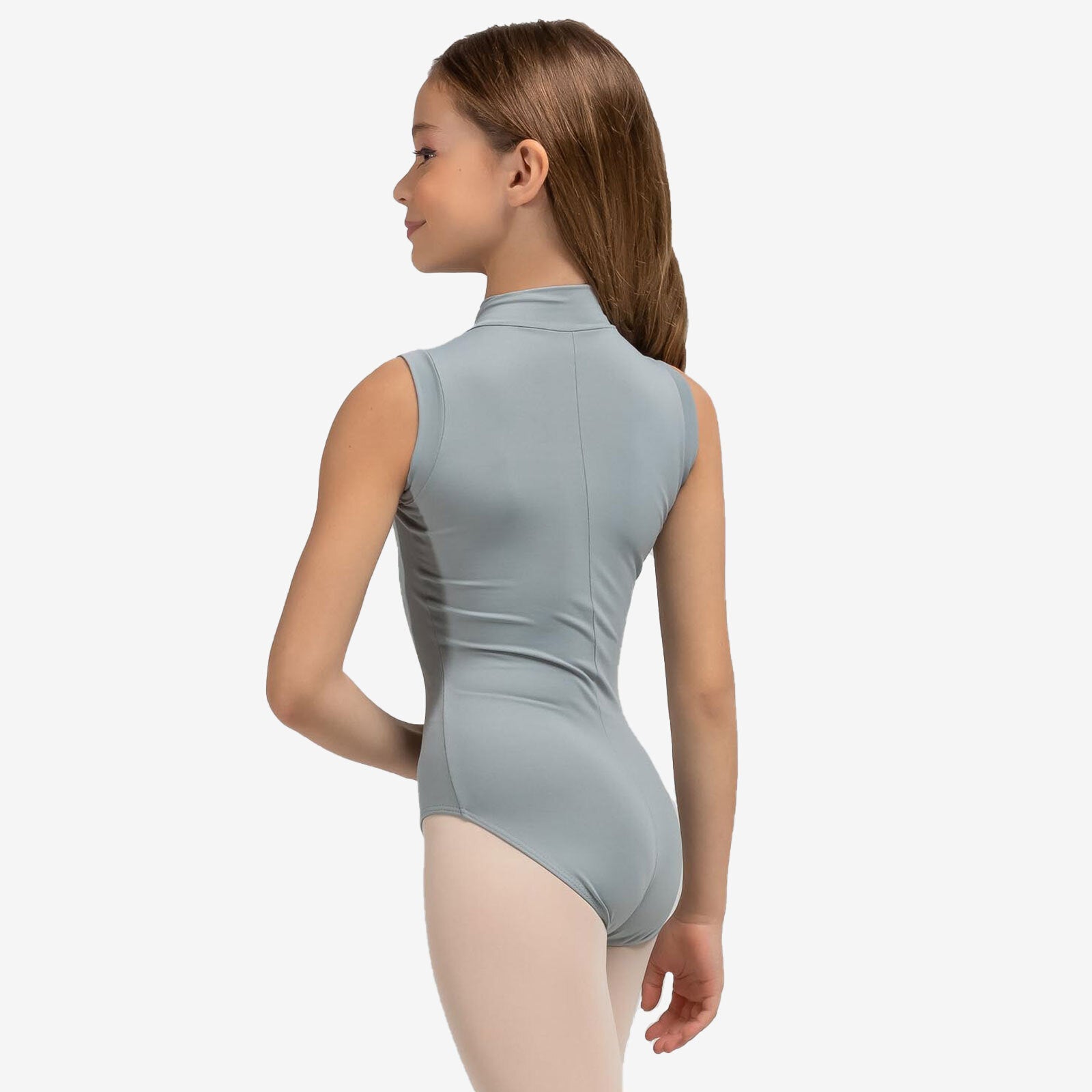 Child Mock Neck Zip Front Leotard with Color-Block Shoulders