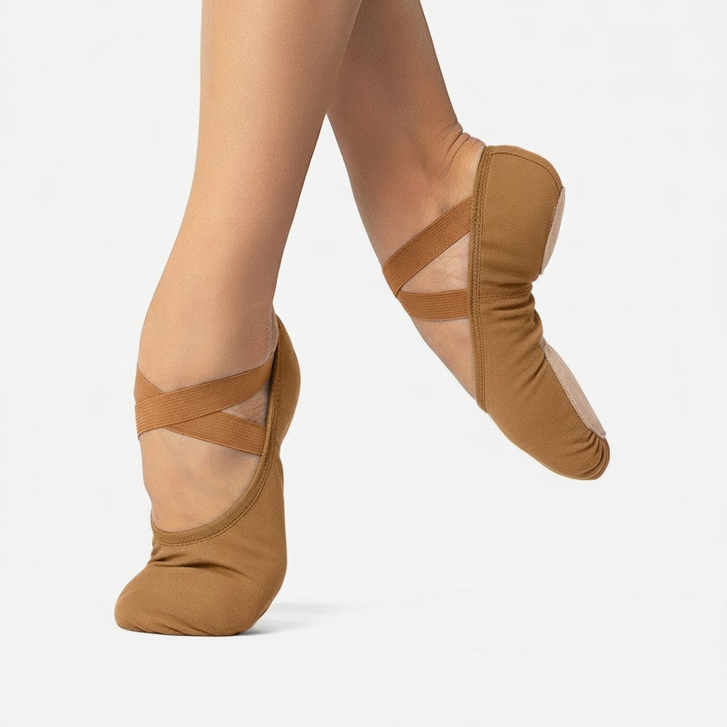 The So Danca Bliss SD16 is a favorite among dancers for its comfortable, streamlined design and versatility. This ballet shoe features a split-sole construction, allowing for maximum flexibility and ease of movement. Made from a soft, stretchy canvas, the SD16 molds to the shape of the foot, providing a custom fit that enhances arch support and showcases the dancer's lines beautifully. The shoe also includes a soft, cushioned heel and toe area for added comfort during long practice sessions. With its elasticized binding, there’s no need for drawstrings, giving it a smooth, clean look on the foot. Perfect for dancers of all levels, the Bliss-SD16 combines comfort, style, and performance in a single shoe.
