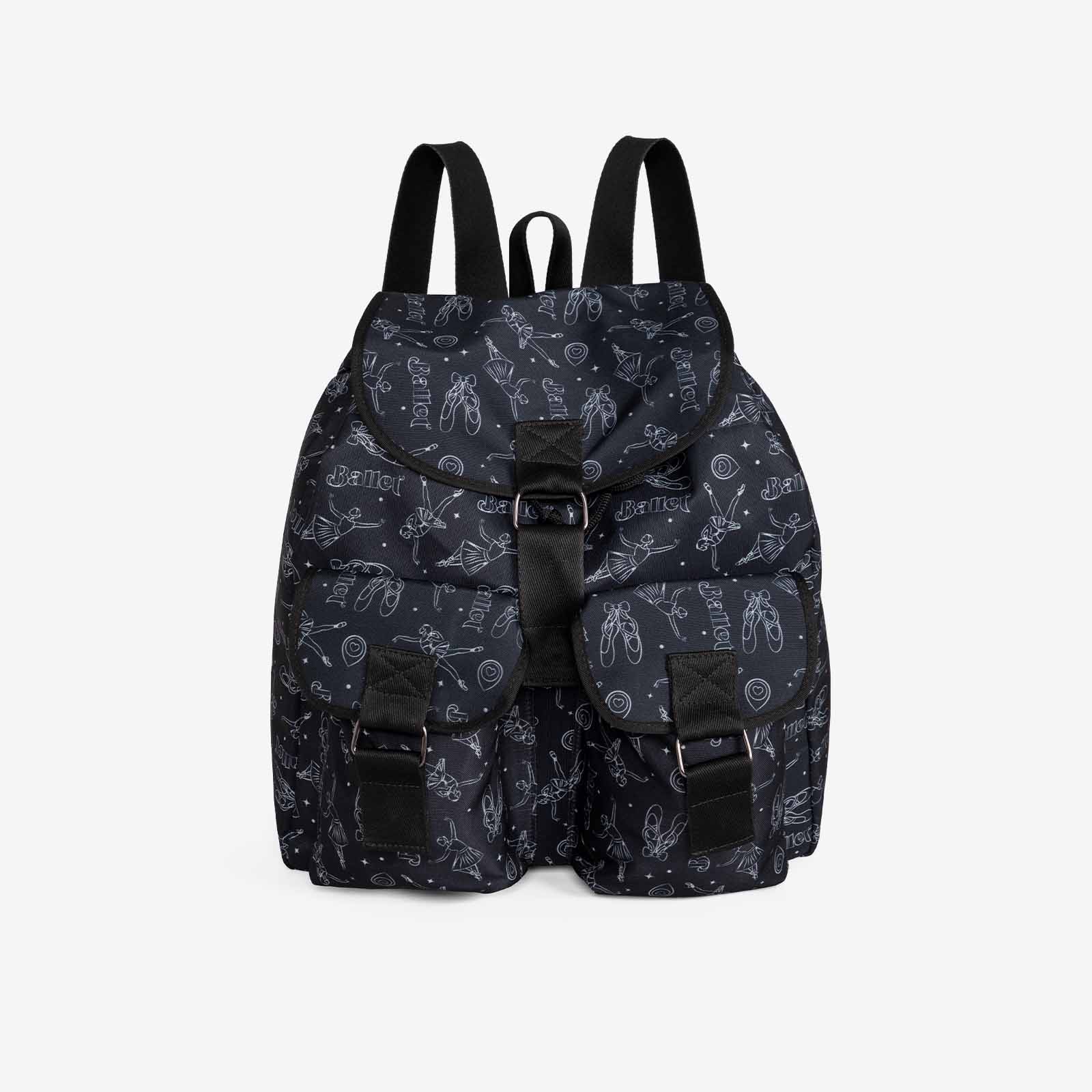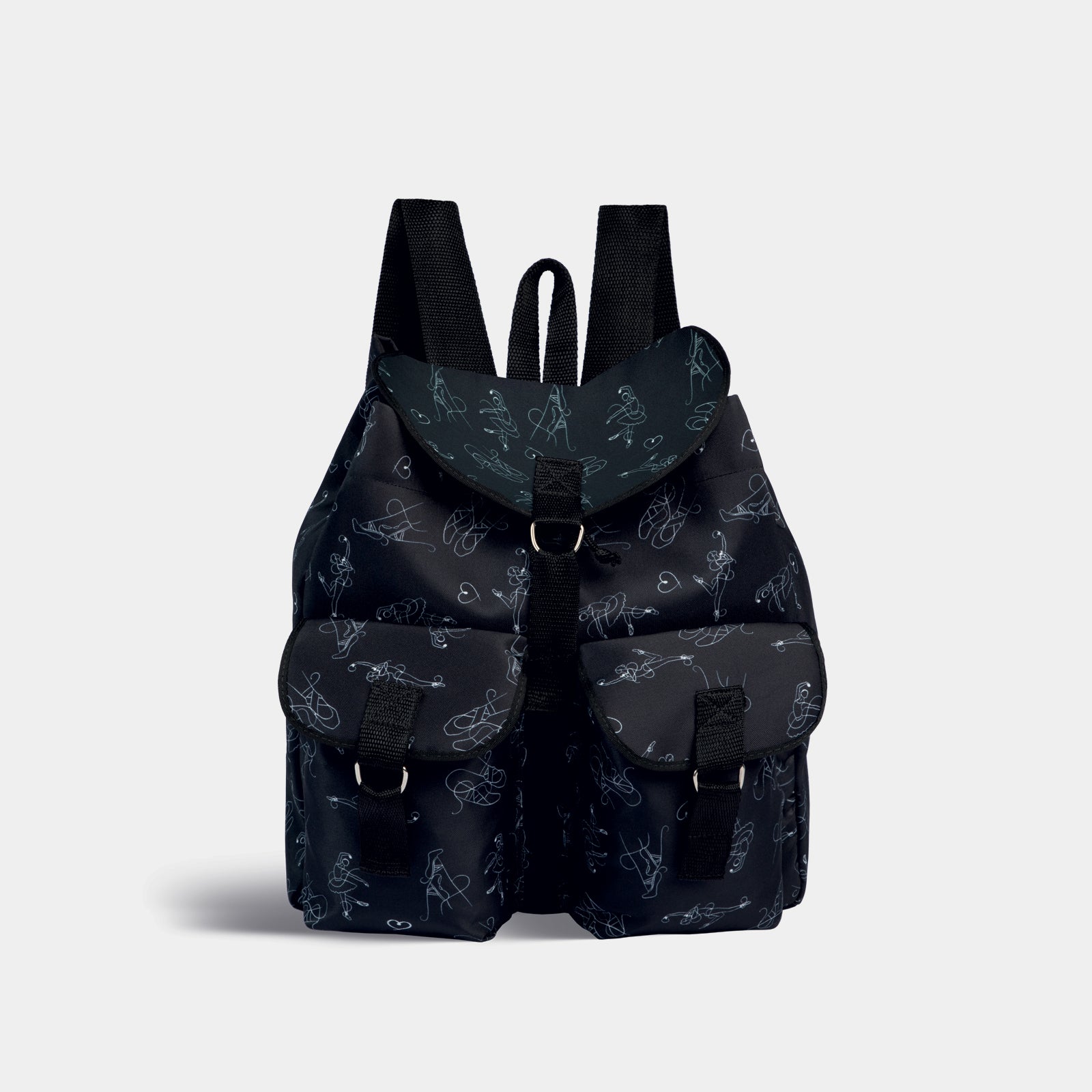 Carry your passion for the stage wherever you go with this sleek Black ballet backpack. The bag features a charming all-over print of delicate line-art ballerinas and pointe shoes, making it a dream accessory for any dancer. With two spacious front pockets secured by buckled straps, there is plenty of room to tuck away your hair pins, ribbons, and snacks. Its lightweight design and sturdy black straps ensure you can travel comfortably from school to the studio without missing a beat. It’s the perfect blend of practical storage and artistic flair for anyone who lives to dance.