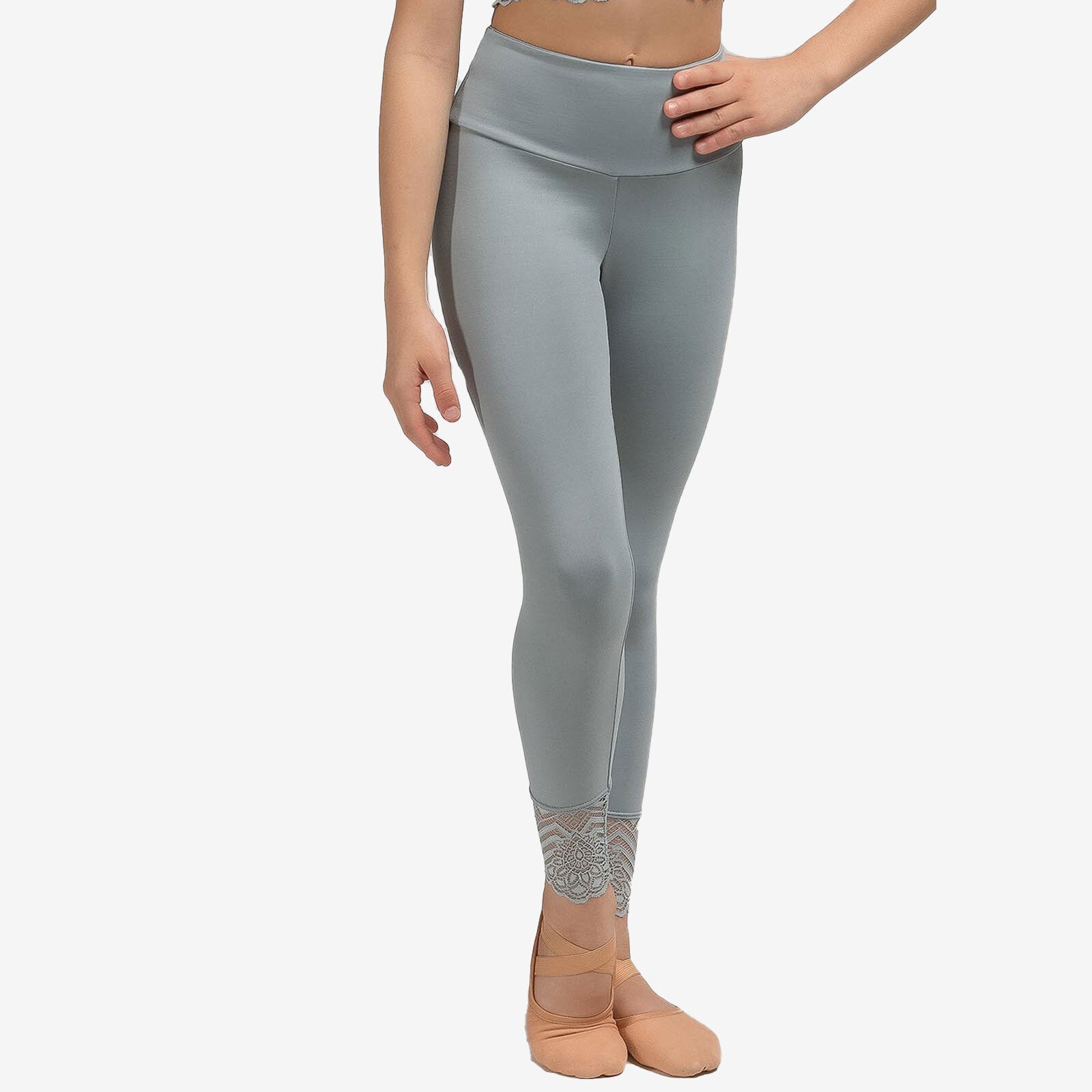 Lilou levels up everyday leggings with a little lace flair. The soft, stretchy microfiber moves with every tendu, the high-rise waistband stays put, and the geometric lace at the ankle adds just-enough drama for class, rehearsal, or warm-ups.