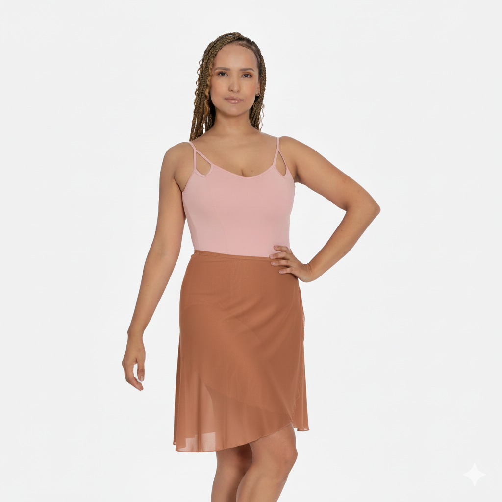 Add a touch of lyrical magic to your studio look with this curvy skirt. This pull-on essential features a flattering mock-wrap silhouette and a delicate ruffled hemline that flows beautifully with every movement. Specifically tailored for a curvy-fit silhouette, it is crafted from ultra-lightweight, sheer stretch mesh to provide elegant coverage without hiding your dance lines.
