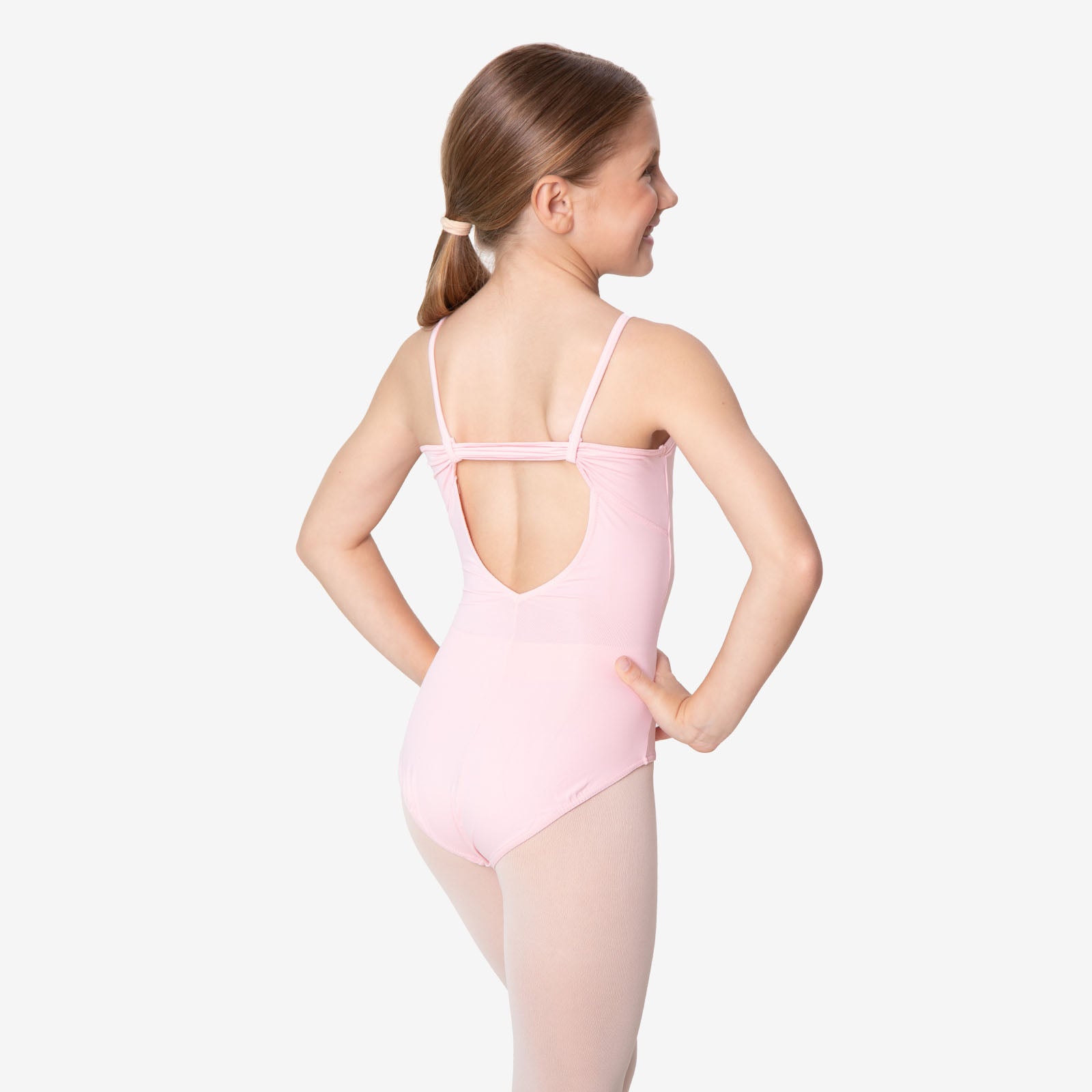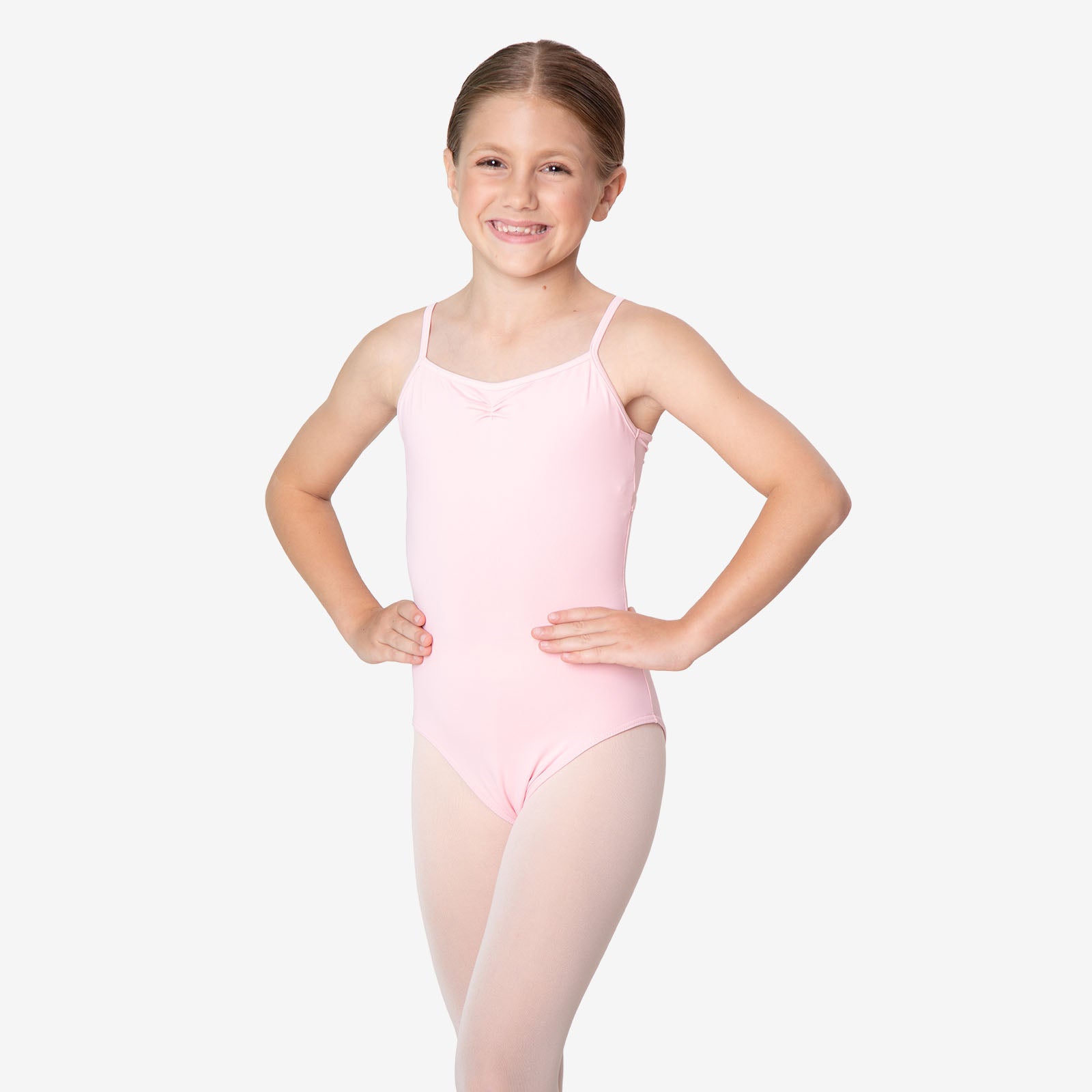 The camisole style offers a classic and timeless look, with delicate straps that stay securely in place as your dancer leaps and bounds. The real showstopper, though, is the charming pinched front detail. This subtle yet stylish feature adds a touch of sophistication, creating a sweet, heart-shaped neckline that frames your dancer’s smile beautifully. Whether your child is just starting their dance journey or has already mastered their first recital, this leo is a delightful addition to their dancewear collection. It's easy to care for, too—simply toss it in the wash, and it's ready for the next grand performance.