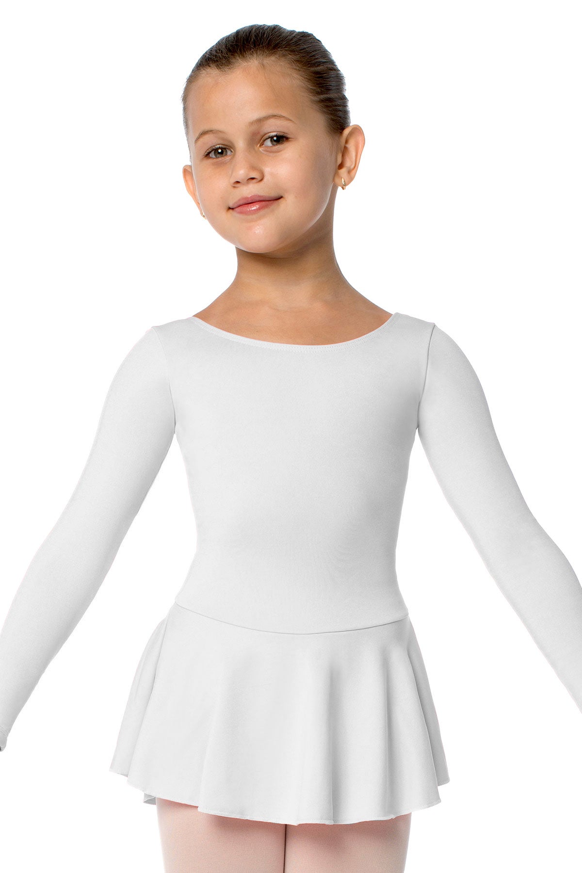 Twist and twirl in the adorable Gillian long sleeve dress. Your little dancer will love the added touch of a bow on the back! This adorable kids’ ballet leotard features sweet long sleeves and a flowy attached skirt that’s made for spinning. Soft, comfy, and oh-so-classic—it’s perfect for tiny ballerinas taking their first magical steps into dance class!