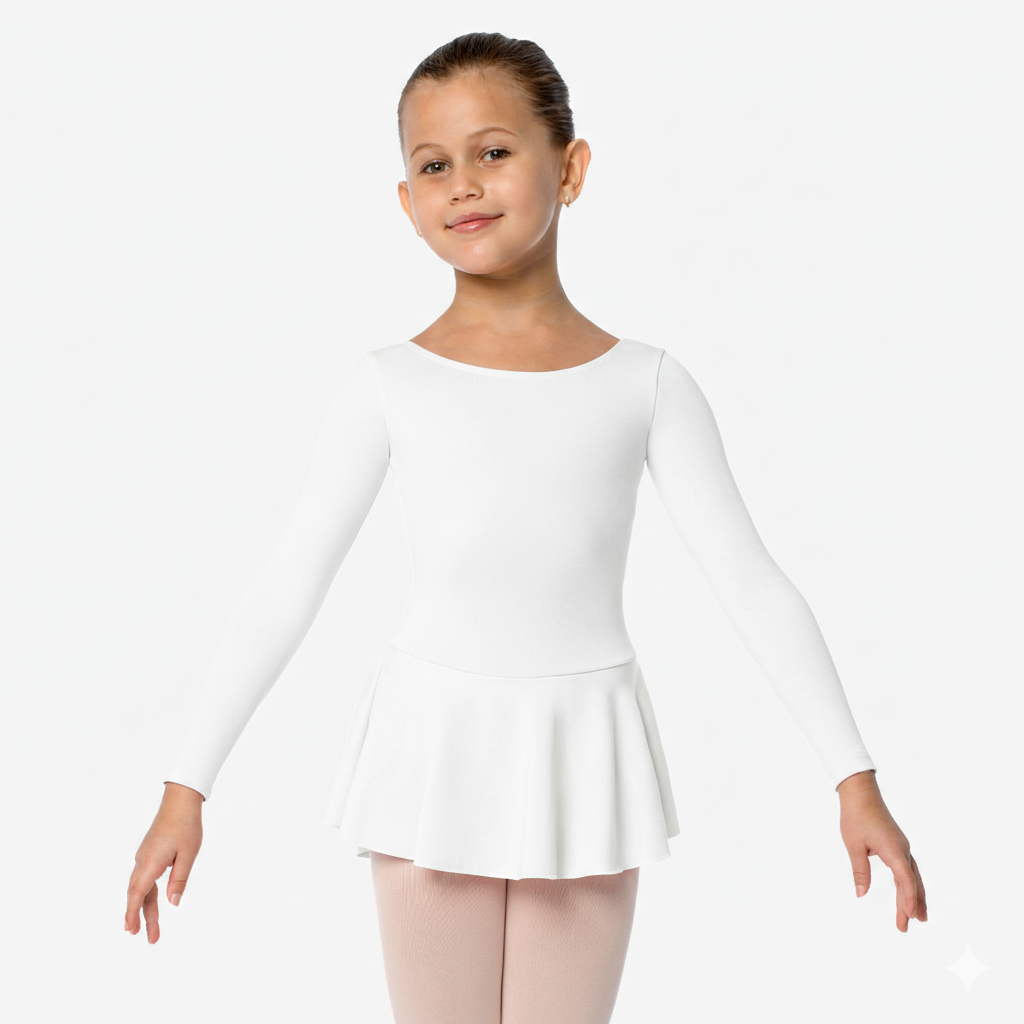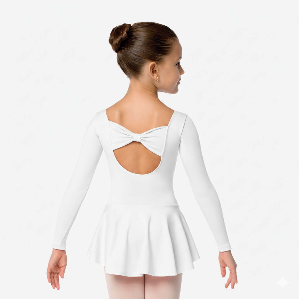 Twist and twirl in the adorable Gillian long sleeve dress. Your little dancer will love the added touch of a bow on the back! This adorable kids’ ballet leotard features sweet long sleeves and a flowy attached skirt that’s made for spinning. Soft, comfy, and oh-so-classic—it’s perfect for tiny ballerinas taking their first magical steps into dance class!