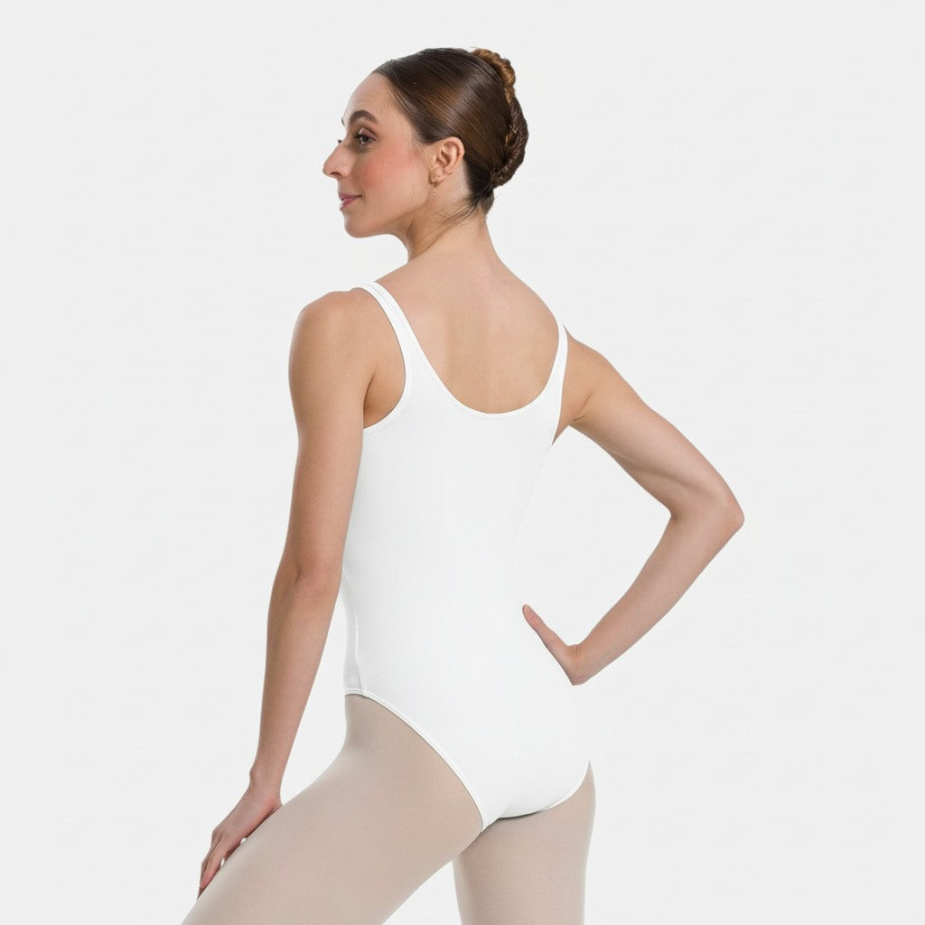 We use this for our studio required Company Leo. We love the Jenny bc it has a drawstring pinch front that girls can choose how deep the front V is, or leave it a more modest scoop front. Material fits so well, no bunching or gaping.