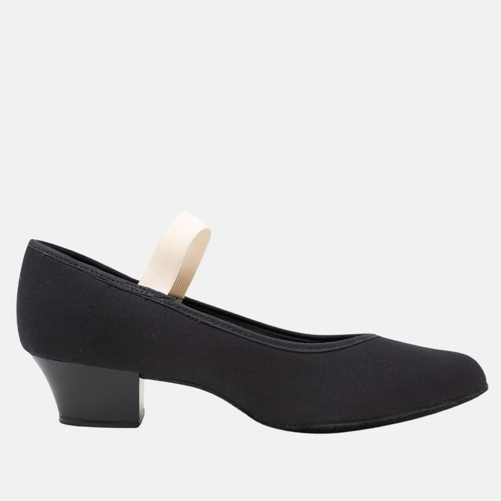 Step into your next performance with confidence in these classic black royal character shoes, designed with a sturdy low heel for maximum stability and support. The sleek canvas upper provides a professional, matte finish that pairs perfectly with any stage costume or rehearsal outfit. Featuring a secure elastic strap over the arch, these shoes ensure a snug fit that stays in place through every rhythmic step and dramatic pose.