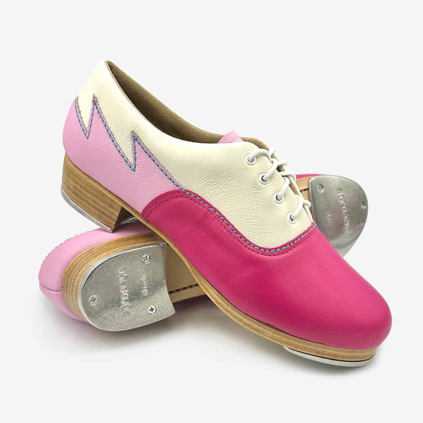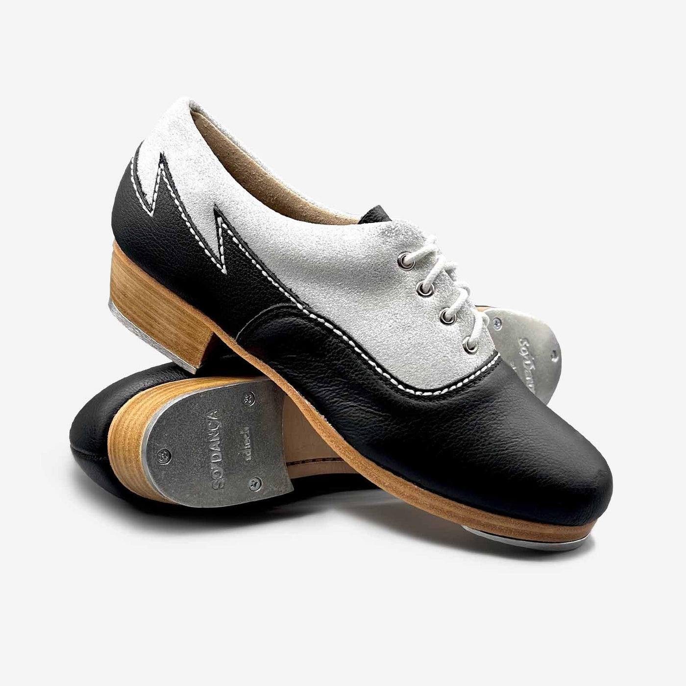 Double leather sole and solid wood heel yield the best quality sound in the industry