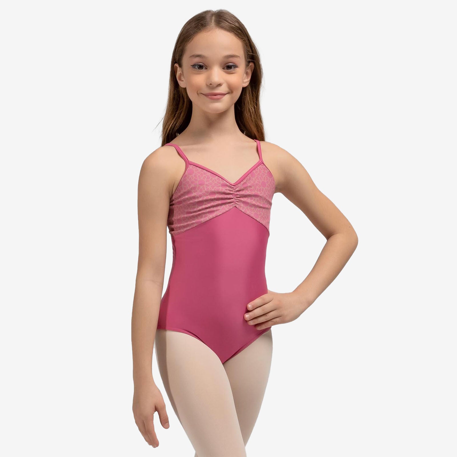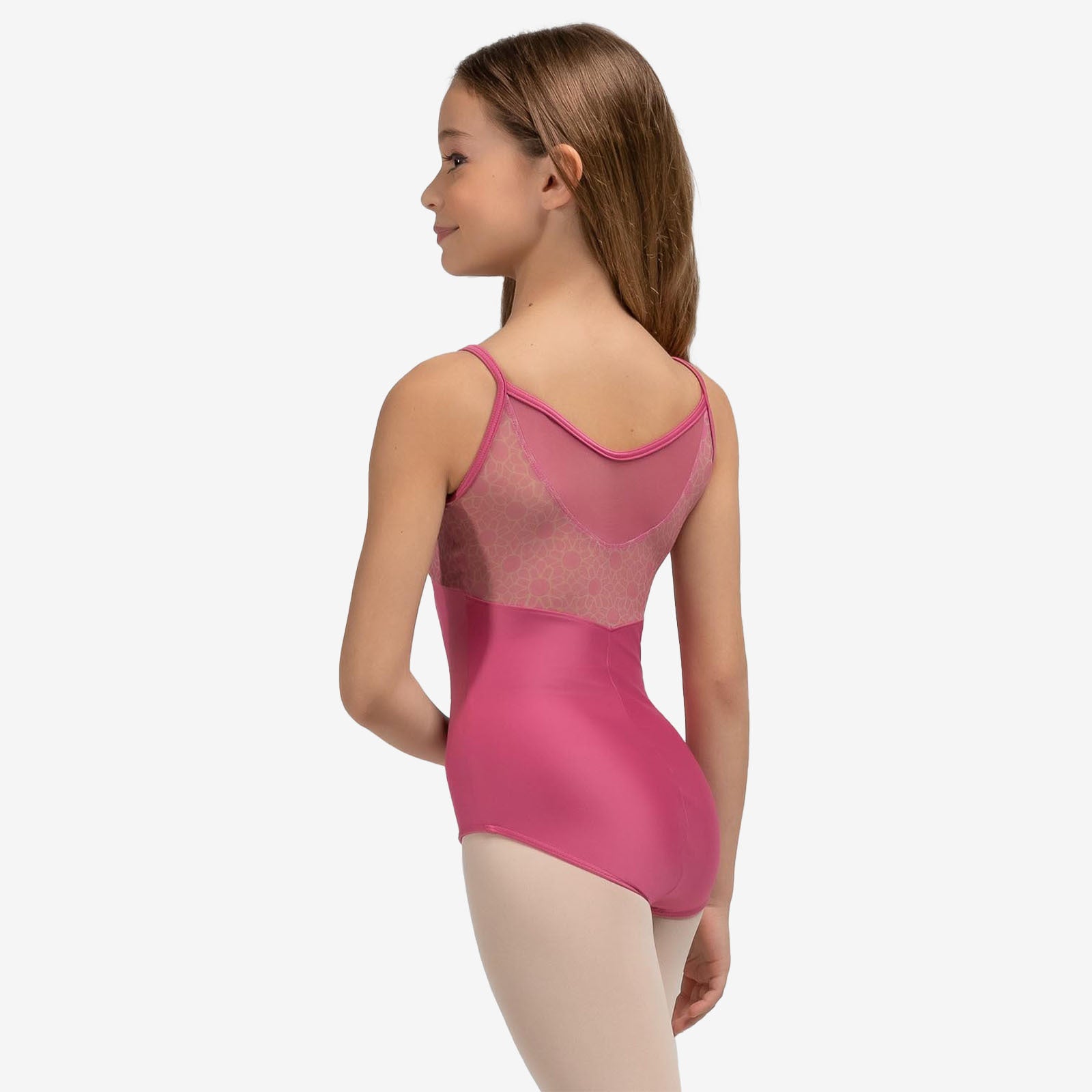 Child Camisole Leotard with Pinch Front & Sheer Printed Mesh Back