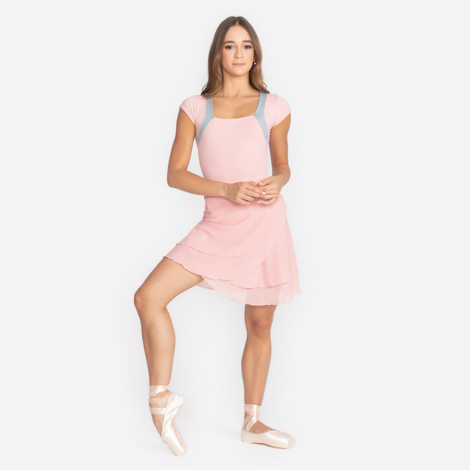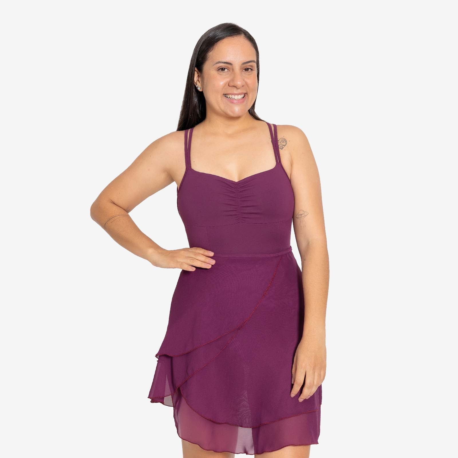 This elegant wrap skirt features a delicate, tiered ruffled hem that adds fluid movement and a touch of romance to any dance ensemble. Its lightweight, sheer fabric creates a graceful silhouette that beautifully complements both classic leotards and modern performance wear. Designed with a functional wrap-style waist, it offers an adjustable and flattering fit for dancers of all shapes. It is a versatile staple for studio rehearsals or stage appearances. This skirt perfectly balances traditional ballet aesthetics with a contemporary, airy feel.