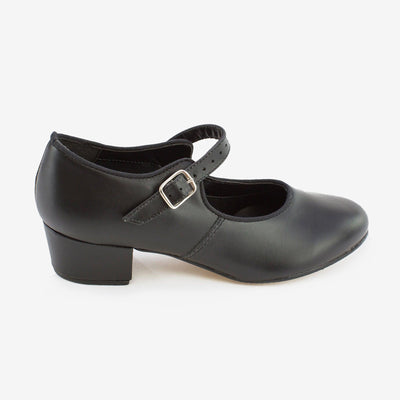 A staple in the So Danca collection, the Caitlin is a 1.25" Cuban heeled shoe created for folkloric dance. This traditional shoe has a higher vamp, wider strap and premium leather upper.