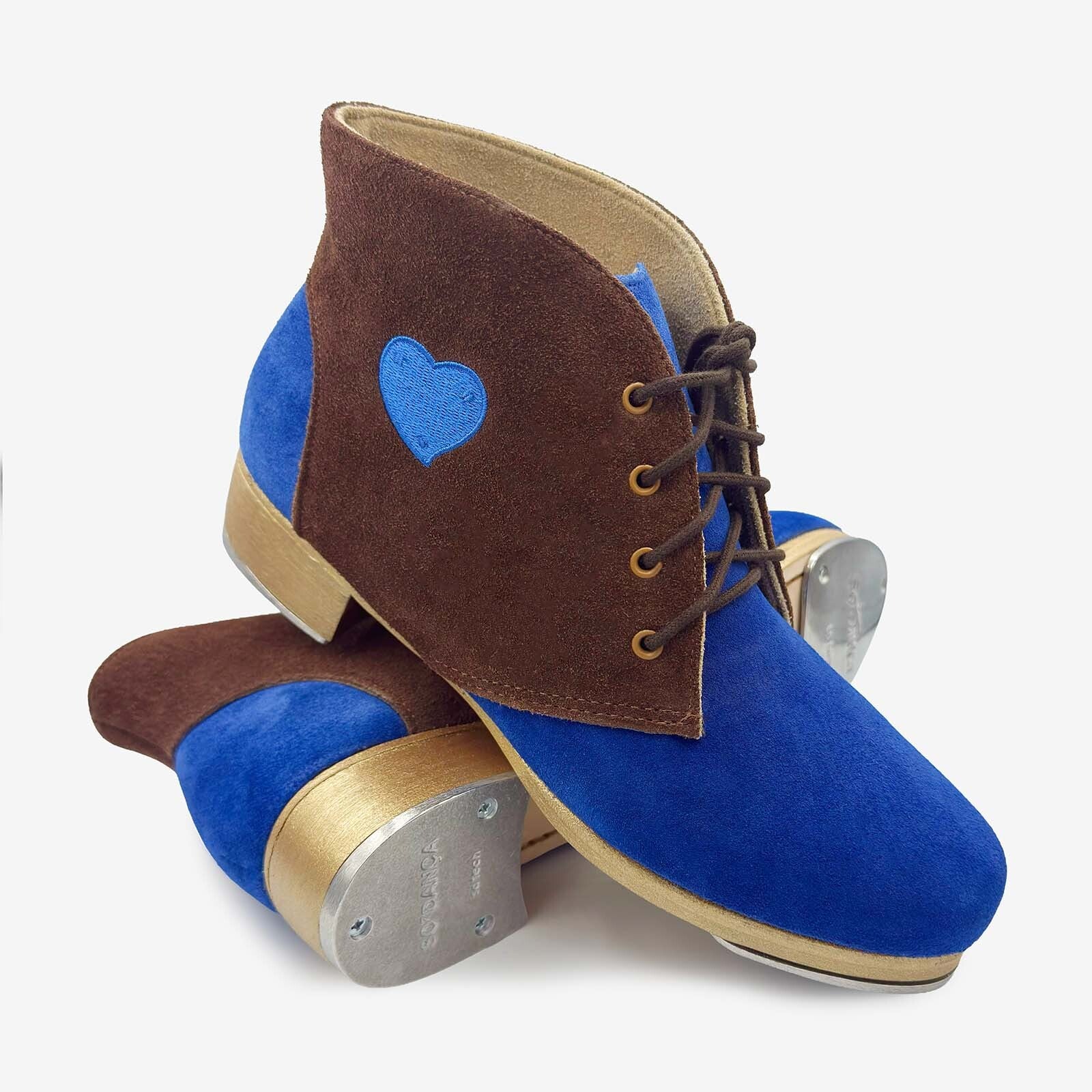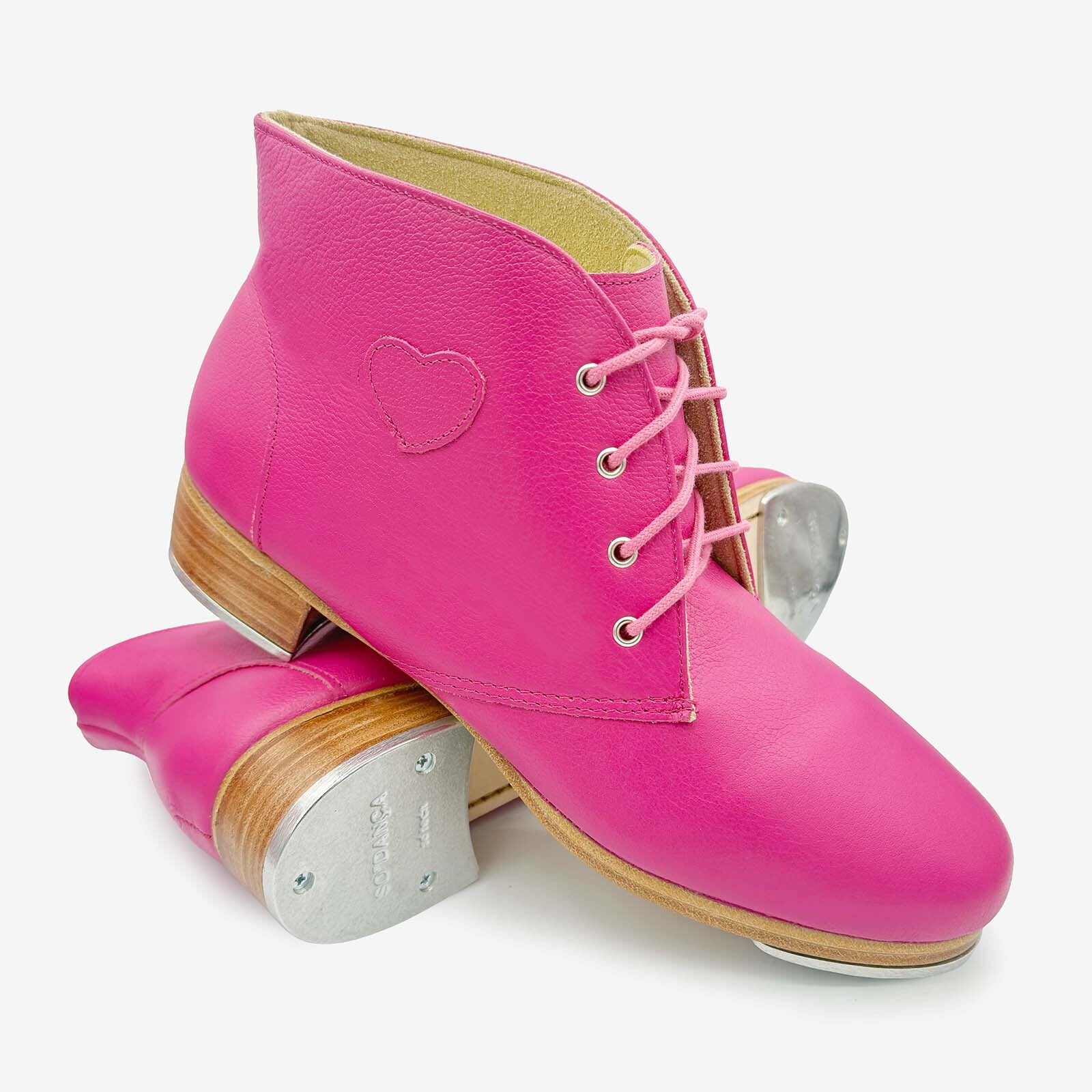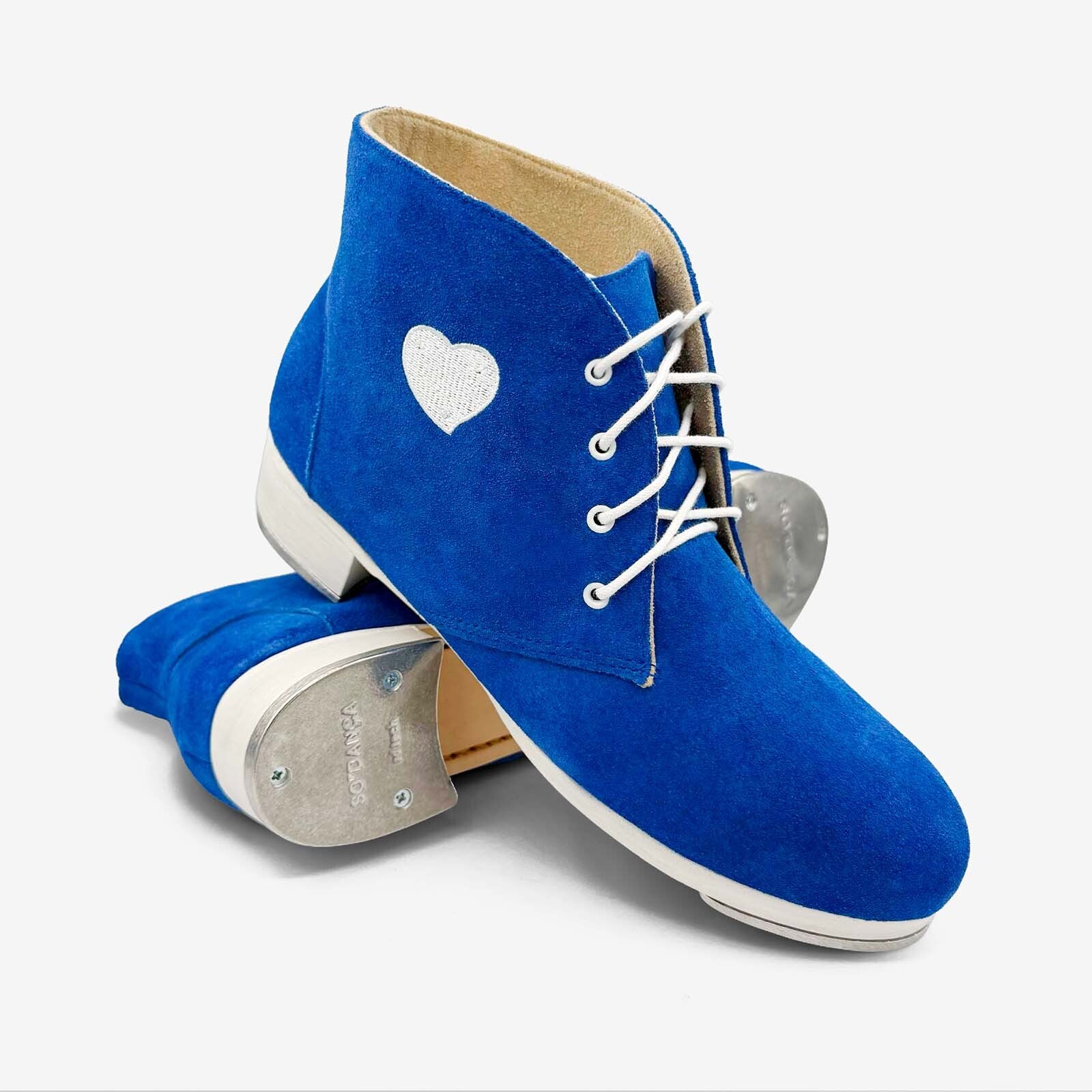 Step into your spotlight – your way. Why settle for off-the-rack when you can tap in your style? Our Custom Pro Tap Boots are built for dancers who want to make noise on their own terms. Unisex, any color, different cuts– if you can dream it, we can make it. Choose between smooth leather or soft suede leather. Add a heart, your initials, your logo, or any design you want to the side of your boot. Customize everything down to the lace and sole colors.