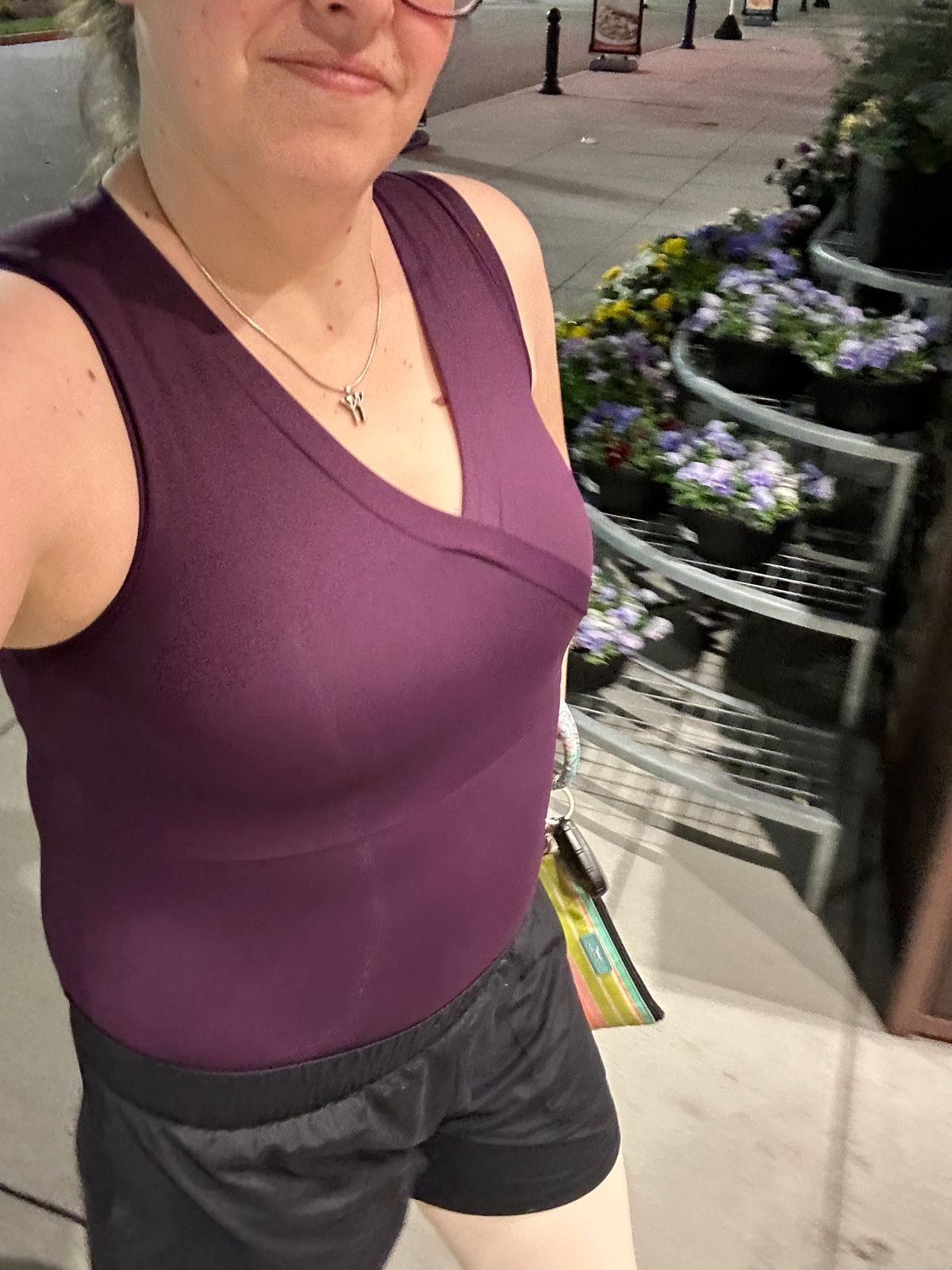 Once on, it's a nice looking leotard, and it does fit my plus size body well, but the cut/design makes it very hard to get the arms through while trying to either pull this thing on or off, at least not without some shoulder flexibility.